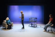 Autour d’elle, deux personnages, interprétés par Laure Blatter (découverte ici dans Mes Parents de Mohamed El Khatib) et Pascal Sangla, musicien-comédien qui œuvrait déjà délicieusement dans Stallone.
